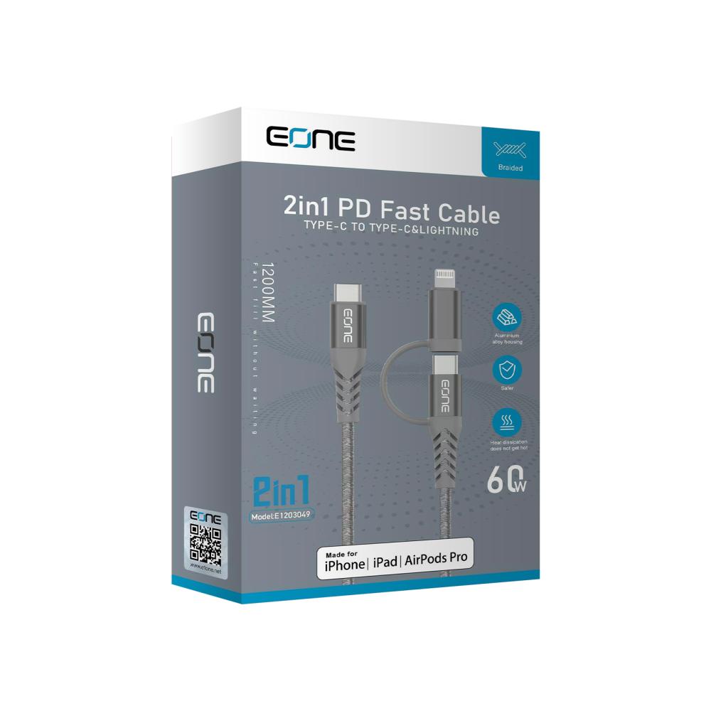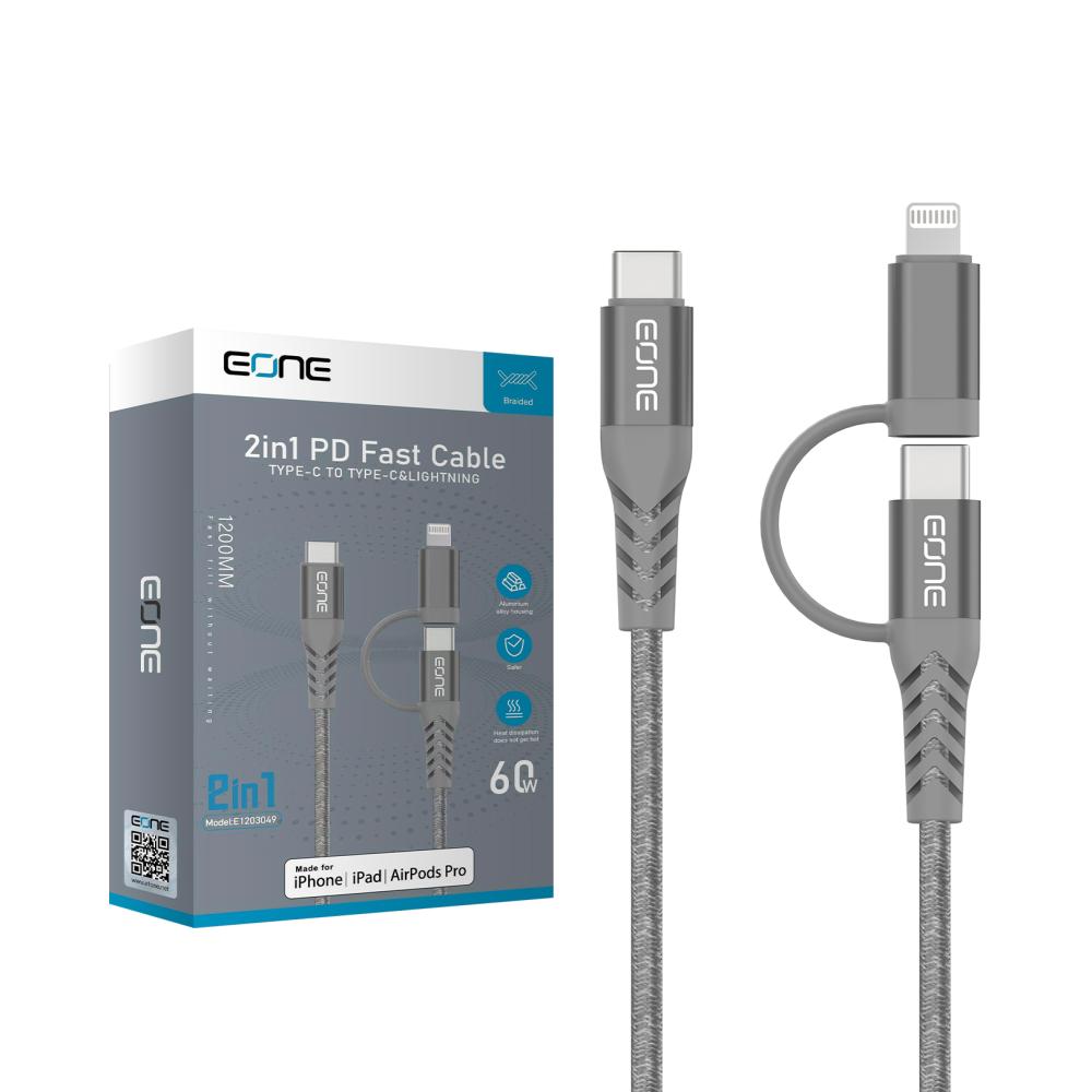 استفد الآن من كيبل EONE تايب سي ولايتنينق 2 في 1 بطول 1.20 متر،