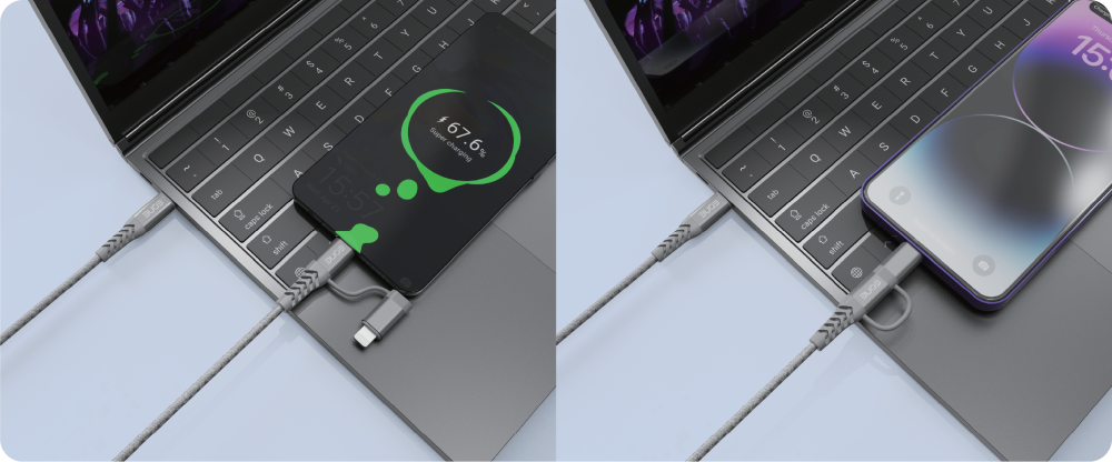 - تصميم 2 في 1: يوفر لك كيبل EONE إمكانية الشحن باستخدام منفذي تايب سي ولايتنينق، مما يجعله حلاً مثاليًا لجميع أجهزتك.
